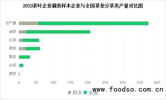樣本企業(yè)2021年度茶葉生產(chǎn)總量為56.47萬噸,占我國茶葉總產(chǎn)量的17.8%。