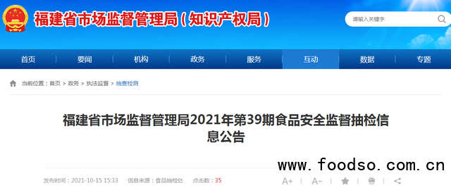 福建省市場監(jiān)督管理局公布13批次食品抽檢不合格(2021年第39期)