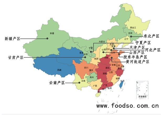 圖1 我國葡萄酒主要產(chǎn)區(qū)分布