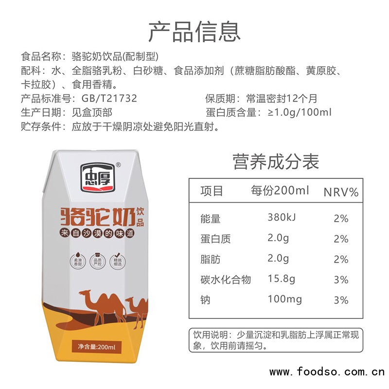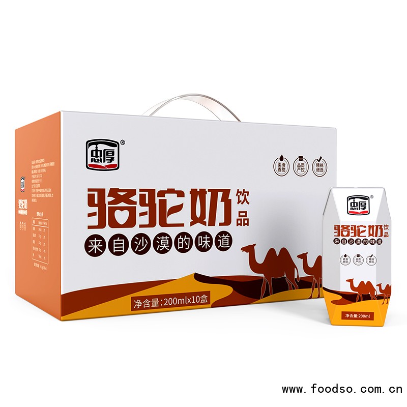 湖北忠厚乳業(yè)集團(tuán)有限公司是一家專注于駱駝奶飲品產(chǎn)品生產(chǎn)、銷售的公司。公司堅(jiān)持以市場(chǎng)為導(dǎo)向,以質(zhì)量為根本,以客戶滿意為宗旨,秉承“誠(chéng)信天下,合作共贏”的發(fā)展理念,為經(jīng)銷商朋友提供滿意的產(chǎn)品。湖北忠厚乳業(yè)集團(tuán)有限公司愿與您攜手互贏,共創(chuàng)輝煌!