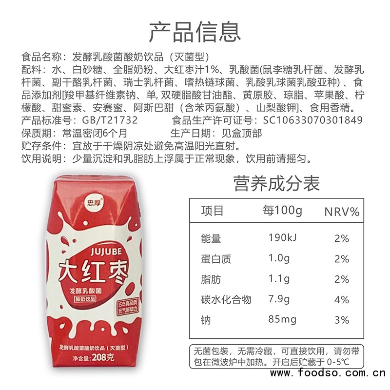 忠厚乳業(yè)大紅棗發(fā)酵乳酸菌酸奶飲品208gx6盒是由湖北忠厚乳業(yè)集團(tuán)有限公司經(jīng)營的植物蛋白飲料系列產(chǎn)品,忠厚乳業(yè)大紅棗發(fā)酵乳酸菌酸奶飲品契合廣大消費(fèi)者需求,口味純正,賦予您豐富的營養(yǎng)和口感。公司始終堅(jiān)持以健康的產(chǎn)品,過硬的質(zhì)量,貼心的服務(wù),合理的價(jià)格和秉承雙贏的經(jīng)營理念,現(xiàn)面向全國誠招代理商,歡迎來電咨詢!